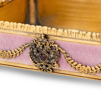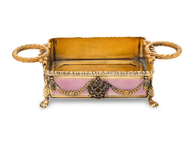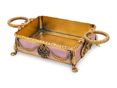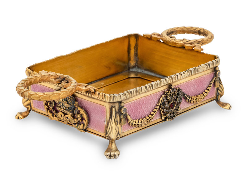 A Russian Jewel Mounted, Silver-Gilt and Guilloché Enamel Decorated Candy Dish