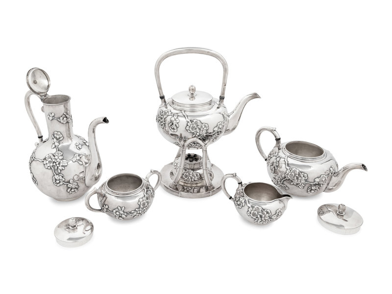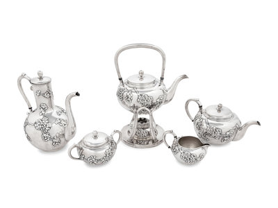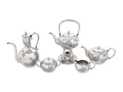 A Japanese Silver Five-Piece Tea and Coffee Service