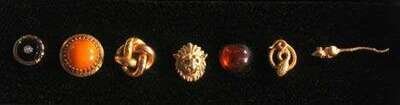 Seven assorted gold tie tacks
