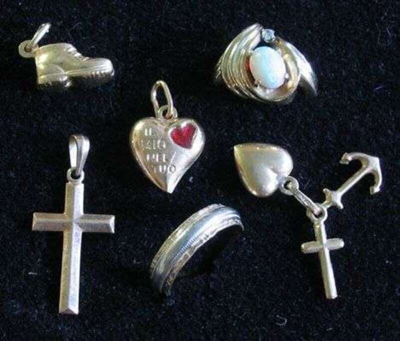Together with a wedding band, and four gold charms (6 pieces).