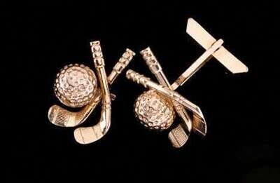 Pair of 14 karat yellow gold "golf ball and club" cufflinks