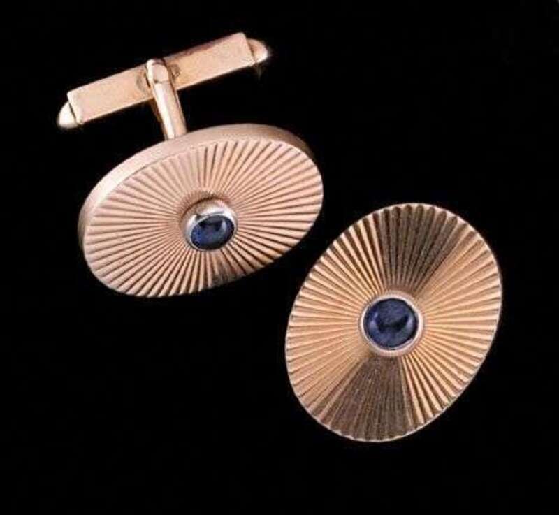 Pair of oval yellow gold and cabochon sapphire cufflinks