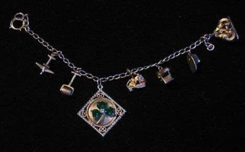 One Suspended with eight large and small gold charms, the other with seven charms one of which is gold filled.