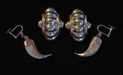 One pair are hollow ribbed turtle shell and the other is set with very small shark's teeth.