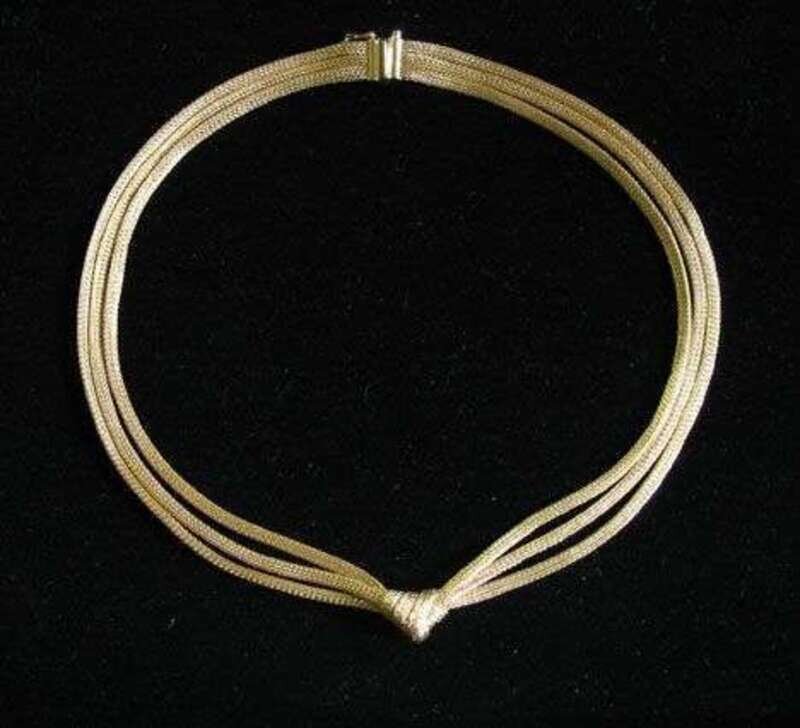 14 karat yellow gold three strand mesh necklace