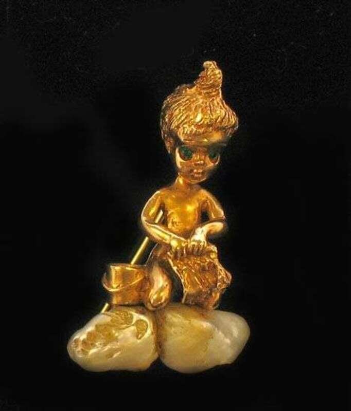 Depicting a child kneeling with a cloth and cup, on a twin baroque pearl base.