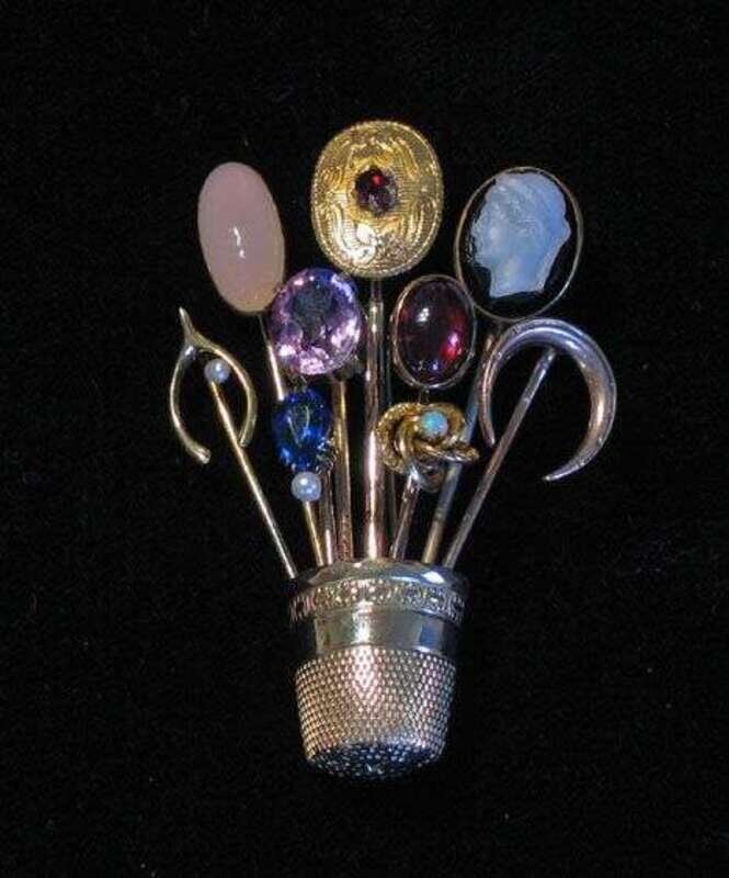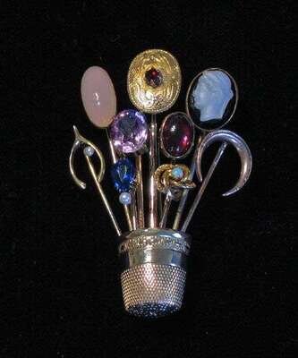 Together with eight stickpins of cameo, semiprecious stone and gold.