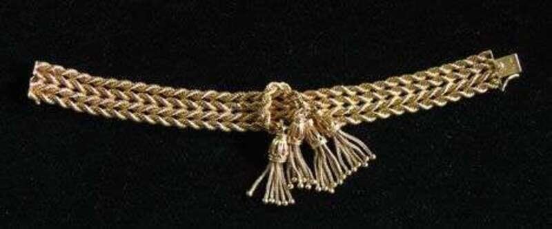 14 karat yellow gold four strand rope flexible bracelet with four tassels second half of 20th century