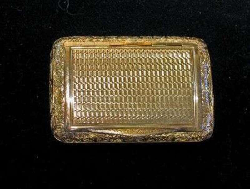 Carved bi-color oblong 18 karat yellow gold snuff box early 19th century