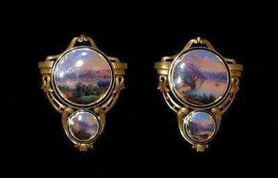 Each with a large circular landscape panel above a smaller circular landscape panel, depicting Chillon and other Swiss lake scenes.