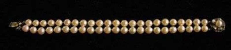 Two strand cultured pearl bracelet with silver clasp