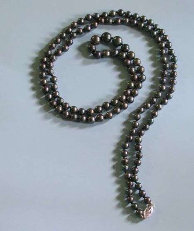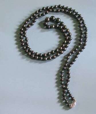 Consisting of one hundred and forty-one black pearls ranging from 5 mm to 8 mm, with a white gold clasp.