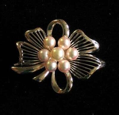 An elegant sterling silver floral pin set with seven cultured pearls.