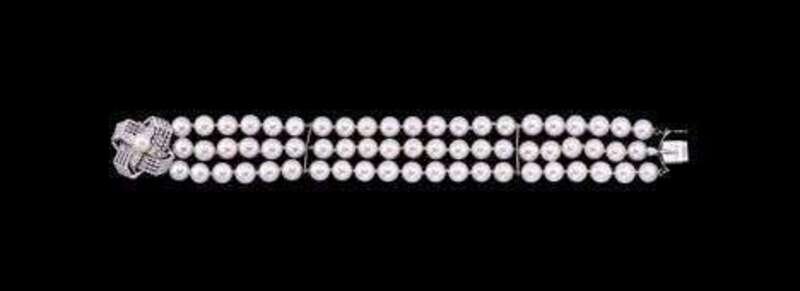 Triple strand cultured pearl bracelet