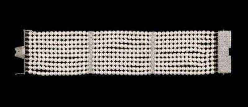 one hundred ninteen circular-cut diamonds, weighing approximately 3.00 carats total and ten cultured pearl strands, each measuring approximately 3.80 mm.
