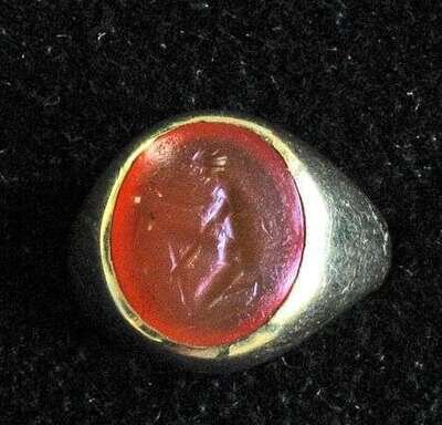 18 karat yellow gold intaglio carved carnelian ring