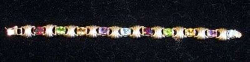 Set with oval faceted garnets, amethysts, peridot and aquamarines.