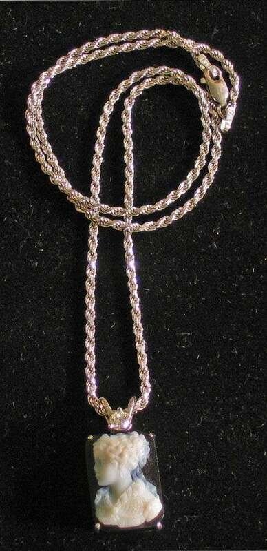 14 karat white gold onyx and diamond cameo pendant