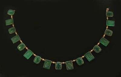 14 karat yellow gold and chrysoprase necklace