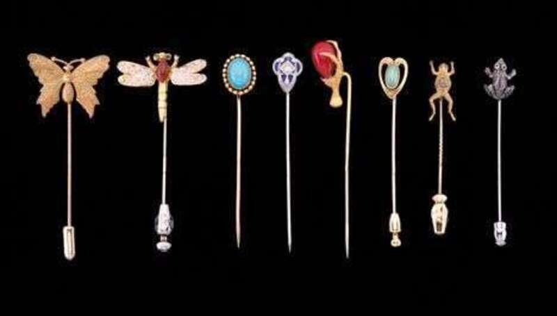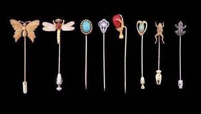 Seven assorted yellow gold and silver stickpins