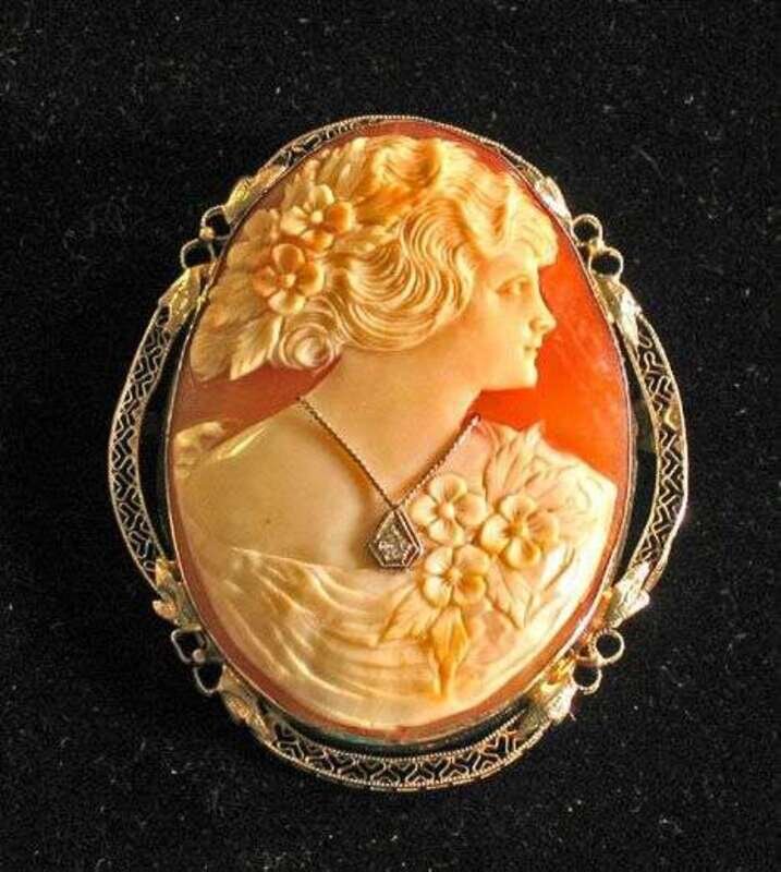 Oval white gold framed cameo chatelaine brooch with diamonds early 20th century