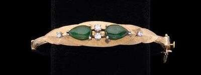 18 karat yellow gold jade and diamond bangle