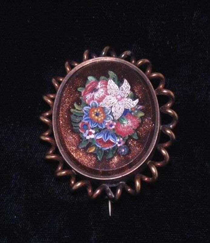 Oval goldstone and micro-mosaic pin 19th/20th century