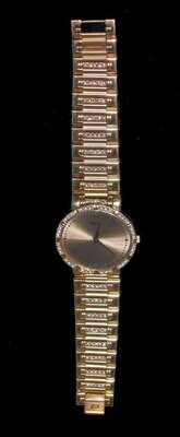 Circular case with thirty-six round diamonds, tapering bracelet with fifty four round diamonds.