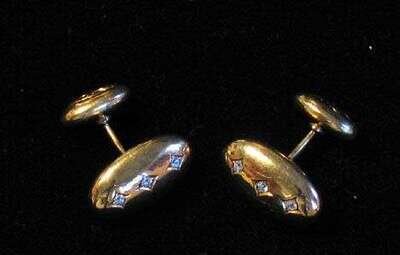 Pair of oval 14 karat yellow gold and diamond cufflinks