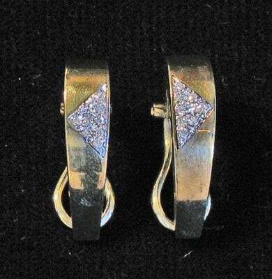 Tapering rectangular "C" design each set with a cluster of nine round diamonds. Total weight of all the diamonds is approximately .40 carats.