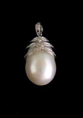 Platinum, pearl and diamond pendant