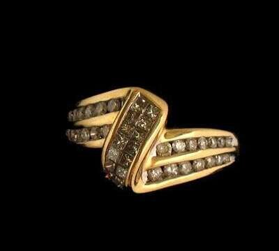 Set with fourteen calibre-cut diamonds and twenty-eight circular-cut diamonds weighing approximately 1.10 carats in total.