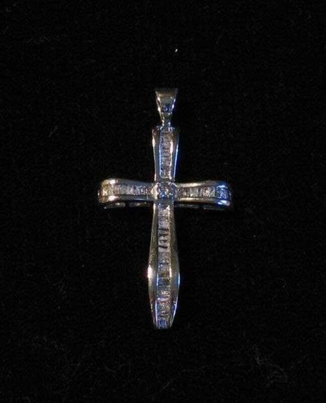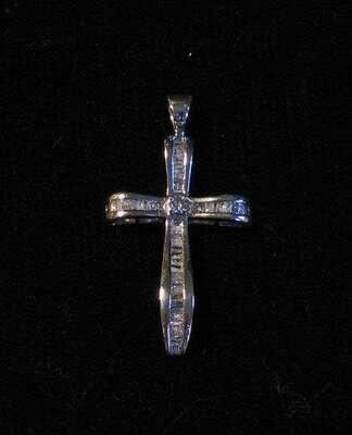 Set with forty-one graduated baguette diamonds and one round diamond, total weight of diamonds is approximately 1.25 carats.