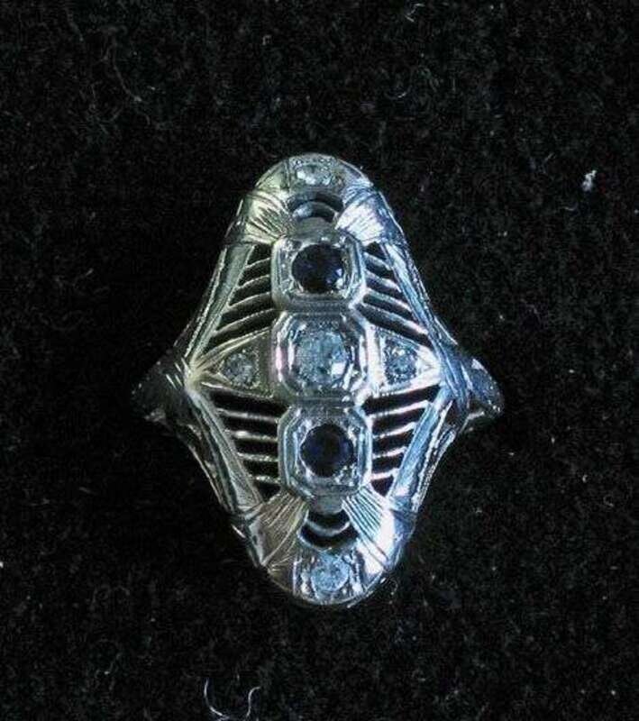 Platinum Edwardian diamond and sapphire ring