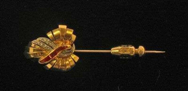 Yellow gold diamond and ruby stick pin
