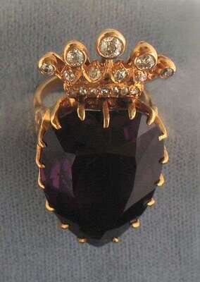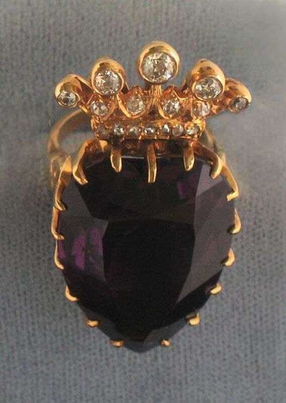 Having a heart-shaped amethyst and nine old European-cut diamonds, weighing approximately 0.60 carats total, and seven rose-cut diamonds..