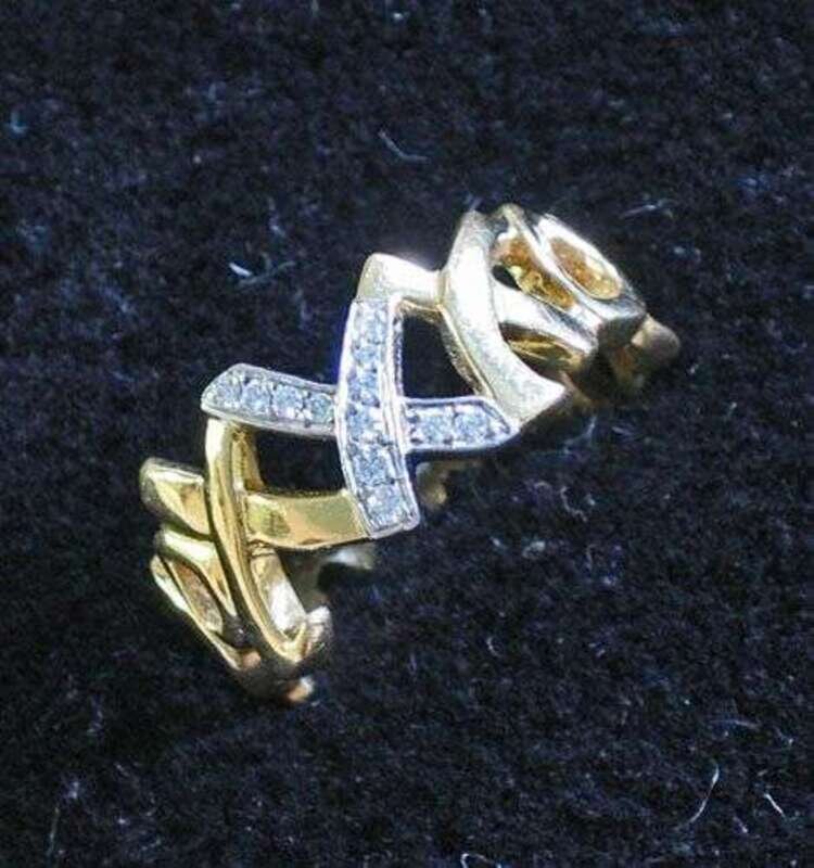 Designed in an openwork "hugs & kisses" pattern and set with twelve diamonds.