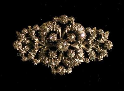 Victorian silver on gold diamond mounted oval pin circa 1850