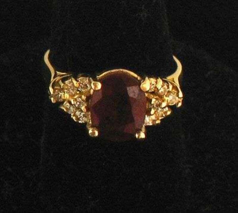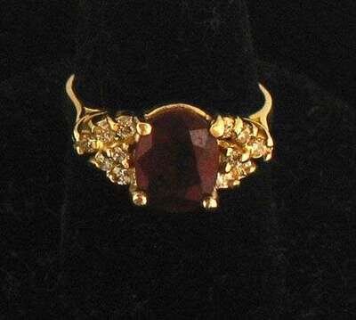 14 karat yellow gold, ruby and diamond ring