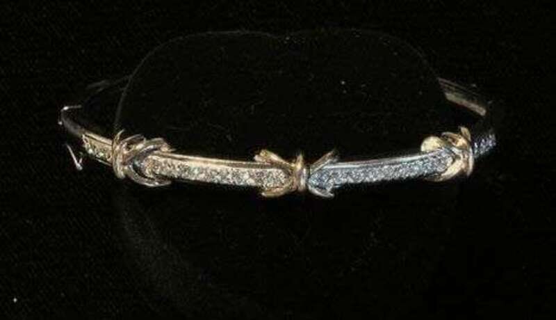 14 karat white and yellow gold diamond bangle