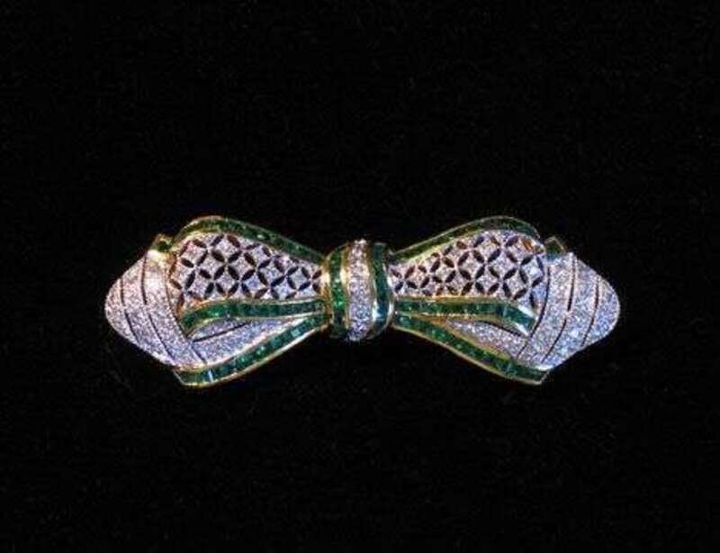 Set with seventy two round diamonds and sixty-six calibre cut emeralds.
