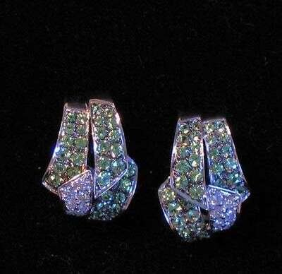 Each set with nine round diamonds and thirty-four round tsavorite garnets. Total weight of all diamonds is about .61 carats, total weight of tsavorite garnets is about 2.42 carats..