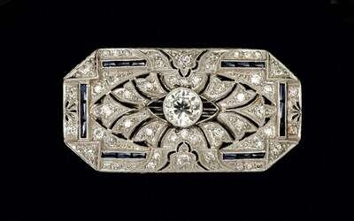 Art Deco diamond, sapphire and platinum brooch 20th century