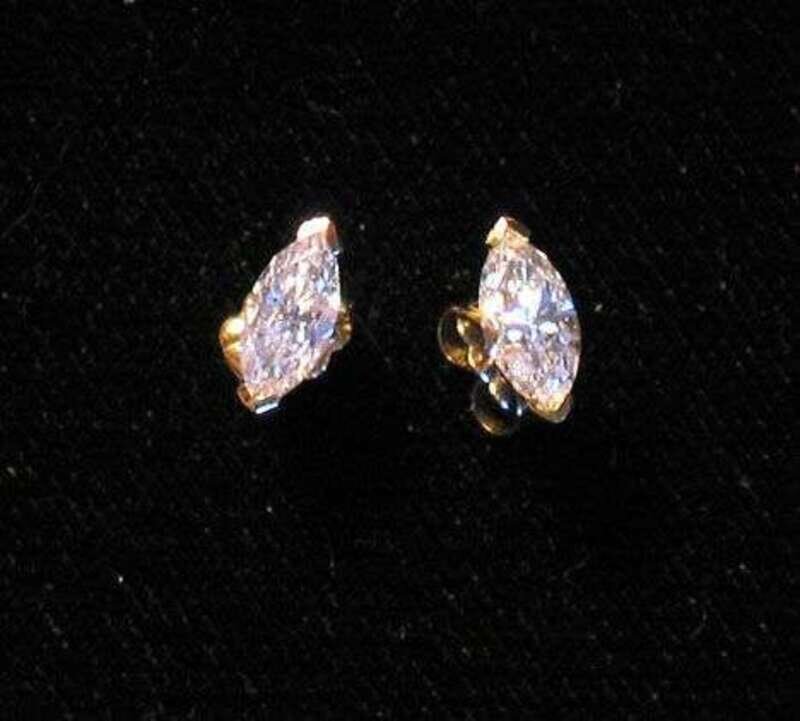 Each marquise-cut diamond weighing approximately 0.35 carats, mounted in 14 karat gold.