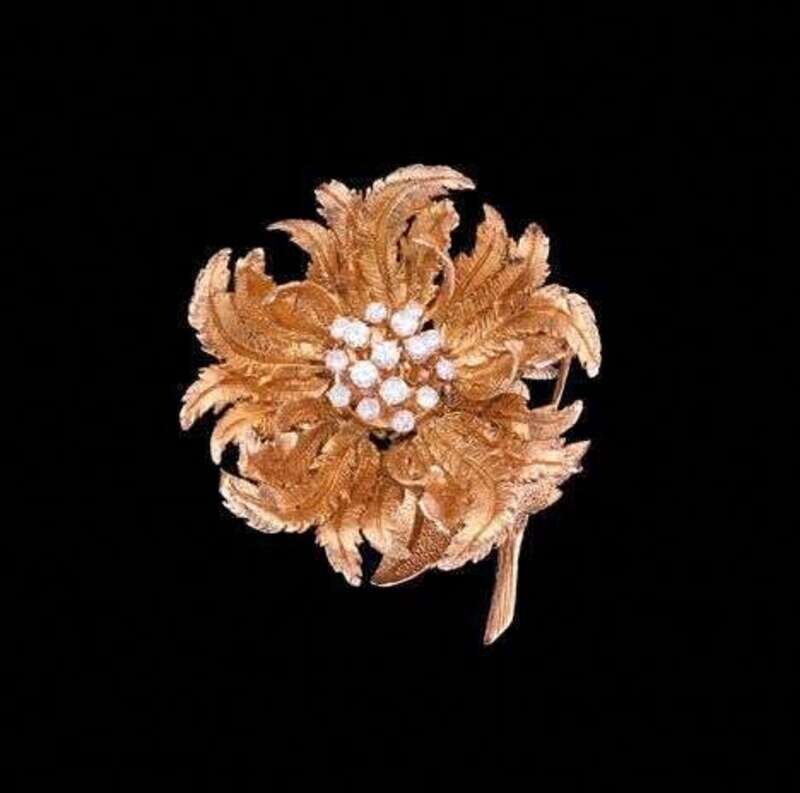 Diamond and 14 karat gold flower brooch by Robert Altman