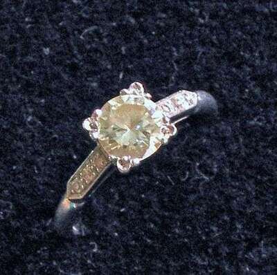 Diamond and platinum engagement ring.