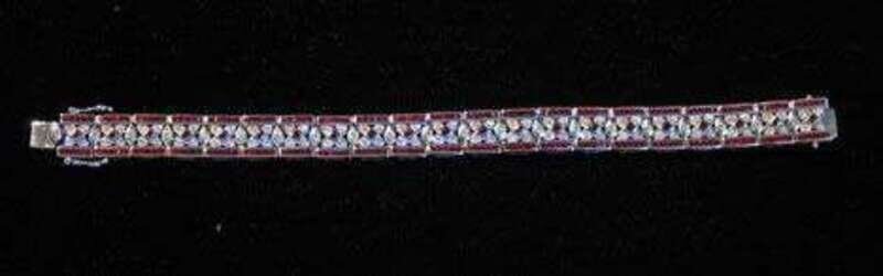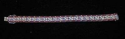 14 karat white gold diamond and ruby flexible bracelet