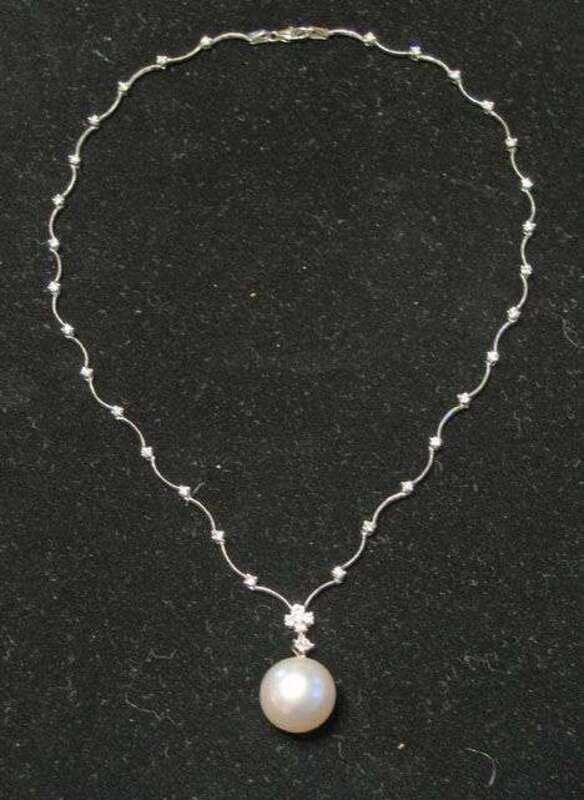 Platinum, diamond and South Seas white pearl pendant necklace