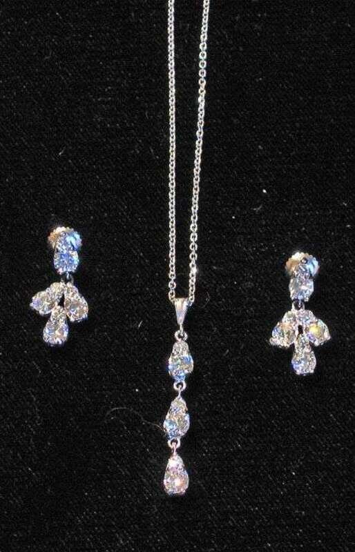 14 karat white gold and diamond pendant and ear pendants