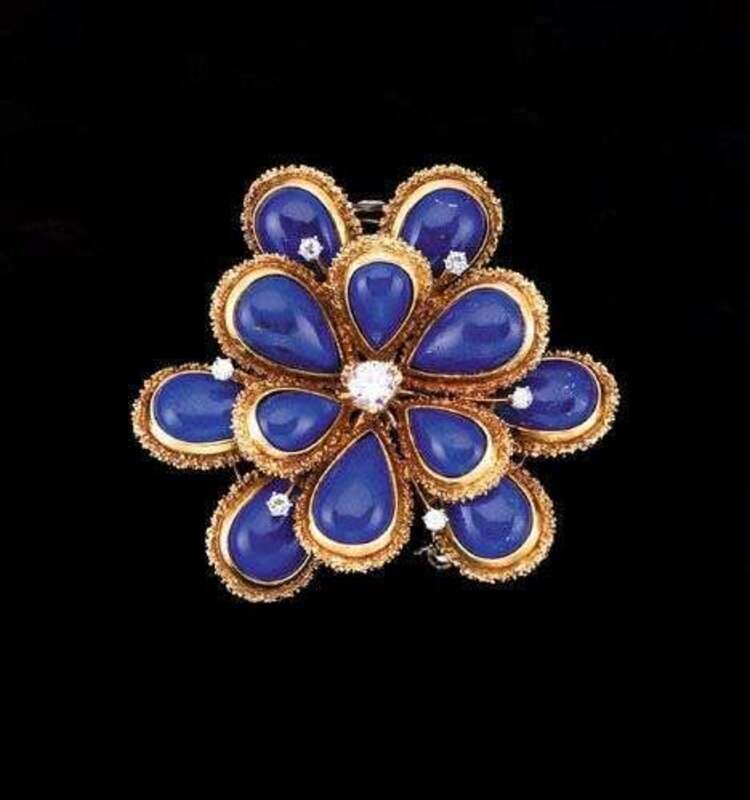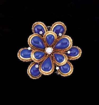 18 karat yellow gold, diamond and lapis floral clip by Van Cleef and Arpels